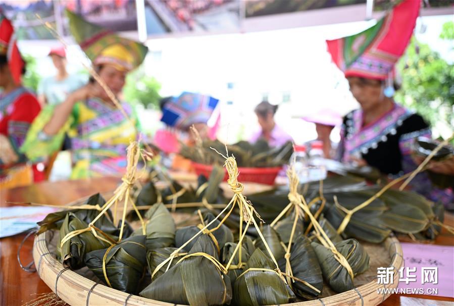 6月22日,在廣西柳州市柳江區(qū)進德鎮(zhèn)泗浪村紅花屯,村民現(xiàn)場參加包粽子比賽。新華社發(fā)(黎寒池 攝)