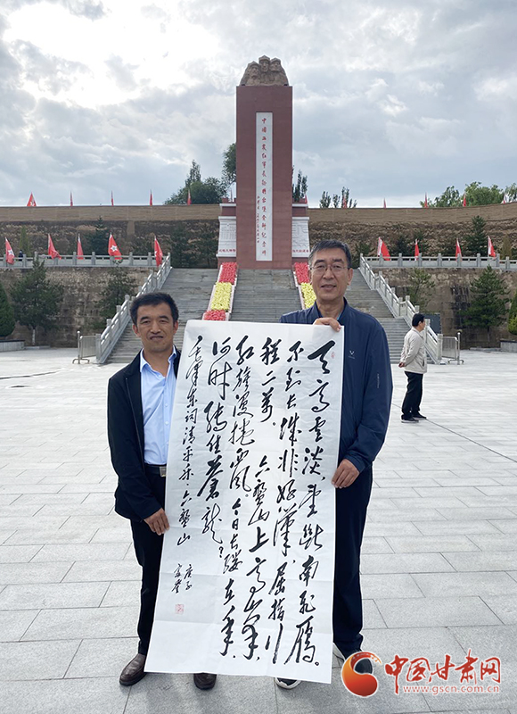當天,甘肅省延安精神研究會還向?qū)⑴_堡紅軍會師長征會師紀念園贈送了毛體書法作品。