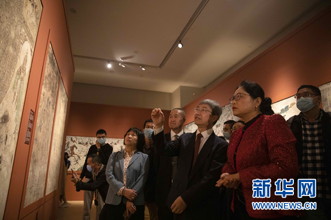 在海南省博物館,敦煌研究院院長趙聲良講解展覽。新華網(wǎng)發(fā)(王嘉奇 攝)