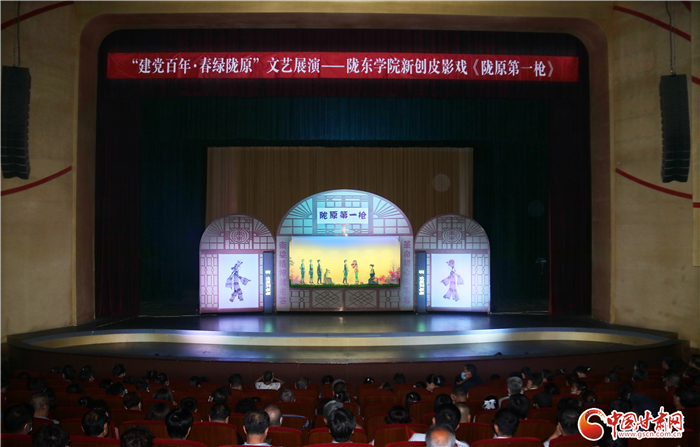 中國甘肅網7月16日訊(本網記者 宋芳科 程?。?月16日晚,紅色題材皮影戲《隴原第一槍》登上“建黨百年·春綠隴原”文藝展演的舞臺。臺前皮影靈動講述一段隴原紅色故事,幕后國家非遺道情皮影傳承人和隴東學院學生聯袂登臺,舞皮影、唱道情在師生傳承中演繹經典文化。為了讓現場觀眾更好了解道情皮影,劇院在后臺同步直播,將藝術家表演皮影的過程通過兩側大屏幕顯示在觀眾面前。同時,中國甘肅網對本次演出全程進行網絡直播,截至演出結束,點擊量超14.7萬次。