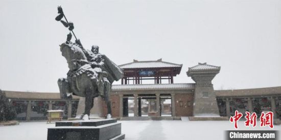 雪落敦煌陽(yáng)關(guān)景區(qū)。 王斌銀 攝