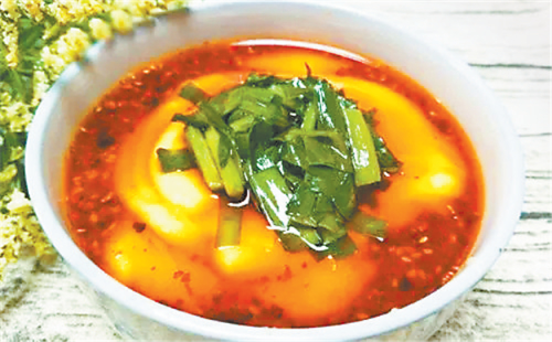 西峰的臊子面也很有地方特色,因其太辣,吃在嘴里不斷發(fā)出噓噓哨聲,故又稱“哨子面”。西峰臊子面制作獨特,吃法有趣,堪稱一絕。正如一首民歌唱到“十八省里(那個)轉(zhuǎn)一遍,好不過咱們西峰的臊子面”。西峰臊子面做工精細(xì),制作分揉面、搟面、做湯、煮面幾個工序:“抻的面銀團團,搟的面紙一般,剁的面千條線,下到鍋里蓮花轉(zhuǎn),撈到筷子上打秋千,盛到碗里賽牡丹。”做成的臊子面條長如線,細(xì)如絲,長而柔韌,細(xì)而不斷,噴香美味,別具風(fēng)味。