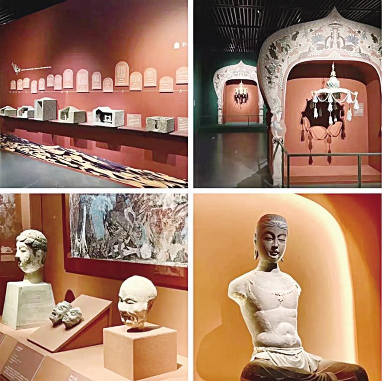 展覽分為“石窟藝術”“絲路重華”“萬象人間”3個單元,展出文物130多件(套),集中展示了甘肅河西走廊沿線出土的重要絲路文物精華,全面展示了中西文明在敦煌與河西地區(qū)的交融與成就。