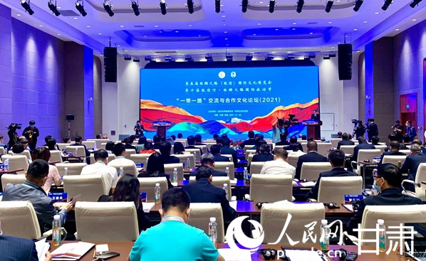 第五屆絲綢之路(敦煌)國際文化博覽會“一帶一路”交流與合作文化論壇(2021)在敦煌國際會展中心舉行。人民網(wǎng) 王文嘉攝