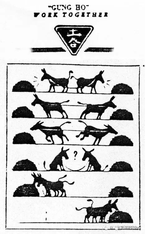 今天,我們回眸海倫·斯諾特別喜愛(ài)和積極傳播的這幅“工合”卡通畫,可以更形象地感受寓含其中的“工合”理念和“工合”精神,“不忘本來(lái),吸收外來(lái),面向未來(lái)”(習(xí)近平語(yǔ)),促使我們努力把這個(gè)起源于中國(guó)、流傳于世界的精神,納入中國(guó)共產(chǎn)黨人的精神譜系之中(注1);把“工合/Gung Ho”這個(gè)中西合璧、寓意深遠(yuǎn)的獨(dú)有詞語(yǔ),納入我們的國(guó)際傳播話語(yǔ)體系中(注2),高舉“工合/Gung Ho”大旗(注3),使之成為我國(guó)的一種軟實(shí)力,成為推動(dòng)構(gòu)建人類命運(yùn)共同體,實(shí)施“一帶一路”倡議的一種人類大家庭共有理念和精神力量。