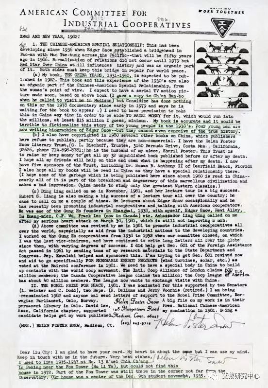 ?。ê?middot;斯諾的工合美國(guó)委員會(huì)信箋)