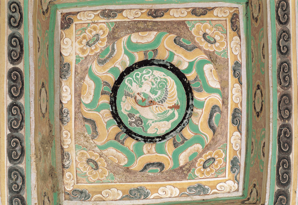 圖為莫高窟第360窟藻井中的“迦陵頻伽”。 敦煌研究院供圖