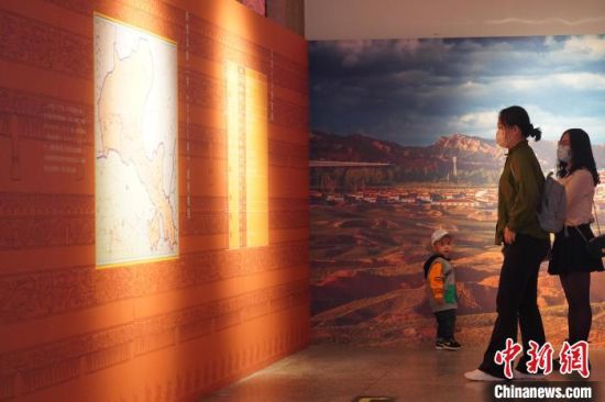 圖為游客參觀“五涼文化展”?!【琶赖┰?nbsp;攝