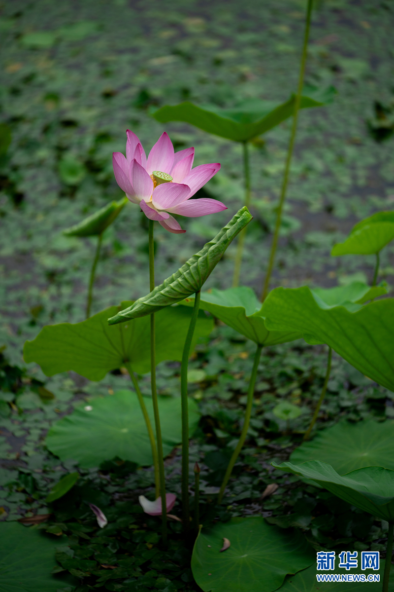 盛夏時(shí)節(jié),甘肅省隴南市成縣裴公湖里的荷花競(jìng)相綻放,在炎炎夏日中帶來一絲清涼。新華網(wǎng)發(fā)(陳爭(zhēng)強(qiáng) 攝)