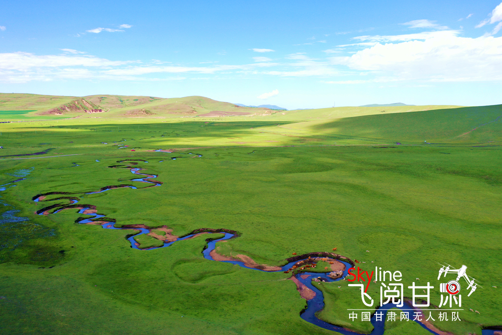 盛夏,是岷縣狼渡灘濕地草原一年中最好的時節(jié),這里天藍(lán)水清,牛肥馬壯,山花爛漫,像是鑲嵌在大地上的一顆綠色明珠,九曲十八彎的狼渡溪流蜿蜒其中,美不勝收。