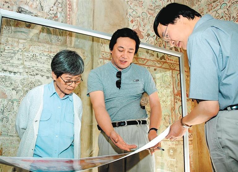 樊錦詩在莫高窟洞窟內(nèi)指導(dǎo)《敦煌石窟考古全集》的編寫工作。(資料圖)(本文圖片除署名外均由敦煌研究院提供)