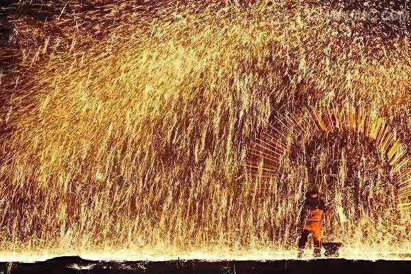 傳統(tǒng)“打鐵花”以老風匣、小融鐵爐、耐火罐、陶勺、耐火鍋、木板等為工具;以生鐵、焦炭、木屑為原料,利用木板擊打熾熱的鐵液和木屑混合物,打出一朵朵千姿百態(tài)、爭奇斗艷、精彩紛呈、絢麗奪目的“鐵花”,由于其顏色吉祥,寓意美好,因此,農(nóng)村都喜歡通過“打鐵花”來祈盼來年風調雨順,國泰民安。