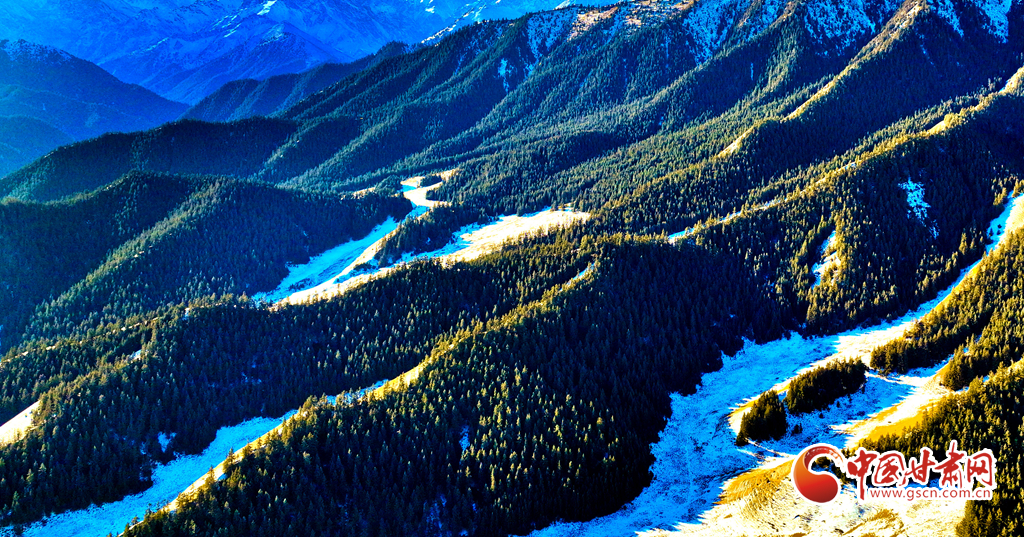 1月21日,雪后的祁連山國家公園甘肅省張掖段肅南片區(qū),遠處的巍峨祁連山脈被皚皚白雪層層包裹,蒼松翠柏,浴雪草原,一派山舞銀蛇的壯美北國風光。