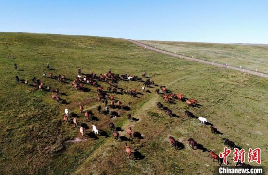 圖為秋日祁連山下山丹馬場(chǎng)駿馬奔騰。(資料圖) 楊艷敏 攝
