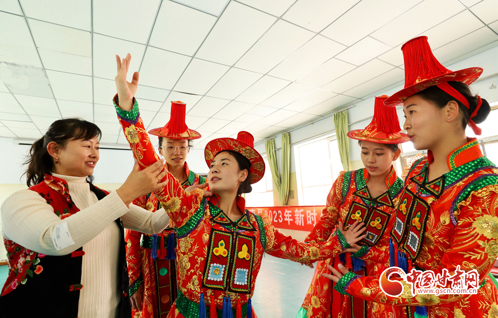 3月21日,肅南裕固族自治縣職教中心非遺傳承人走進(jìn)課堂,向校園內(nèi)的學(xué)生們傳授裕固族服飾制作、裕固族舞蹈、裕固族原生態(tài)民歌演唱等非遺項(xiàng)目。