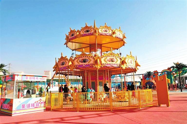天鵝過山車、童話轉(zhuǎn)馬、瘋狂海盜船……快樂從這里起航。2023年12月30日,蘭州冬季旅游嘉年華啟幕暨蘭州歡樂園揭牌儀式舉行。此次蘭州冬季旅游嘉年華啟幕暨蘭州歡樂園揭牌,是西固區(qū)打造“黃河文化”旅游帶的務(wù)實(shí)之舉,是河口古鎮(zhèn)、天鵝灘景區(qū)等地方旅游產(chǎn)業(yè)與“冰雪經(jīng)濟(jì)”聯(lián)動(dòng)發(fā)展的重要路徑。蘭州歡樂園的建成運(yùn)營(yíng),增添了西固網(wǎng)紅打卡名片,填補(bǔ)了大型游樂類旅游項(xiàng)目的空白,豐富了西固旅游的功能體系。