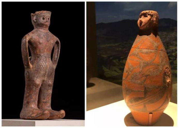 隴東有少女,而位于河西的玉門火燒溝同樣出土了一件距今3700多年的人形彩陶罐,被人們稱做“河西少年”。在2019年“少女”與“少年”這一對“金童玉女”就已經(jīng)邂逅了,2019年中國國家博物館展出“絲路孔道——甘肅文物精華展”時,在展覽序廳門口了生了這樣一場友愛的“接力”。隴東大地灣的可愛“少女”——人頭形器口彩陶瓶說:“出來有一陣子了,在京城過了端午節(jié),該回家了!在京的時間雖短,但我很高興作為代表在國家博物館迎接全國、全世界的觀眾,希望還有機會可以再來!”。河西火燒溝的酷“少年”——人形彩陶罐說:“您回家了,我接替您的工作,在展覽的大門口,繼續(xù)帶領(lǐng)觀眾領(lǐng)略多彩厚重的甘肅歷史文明!”