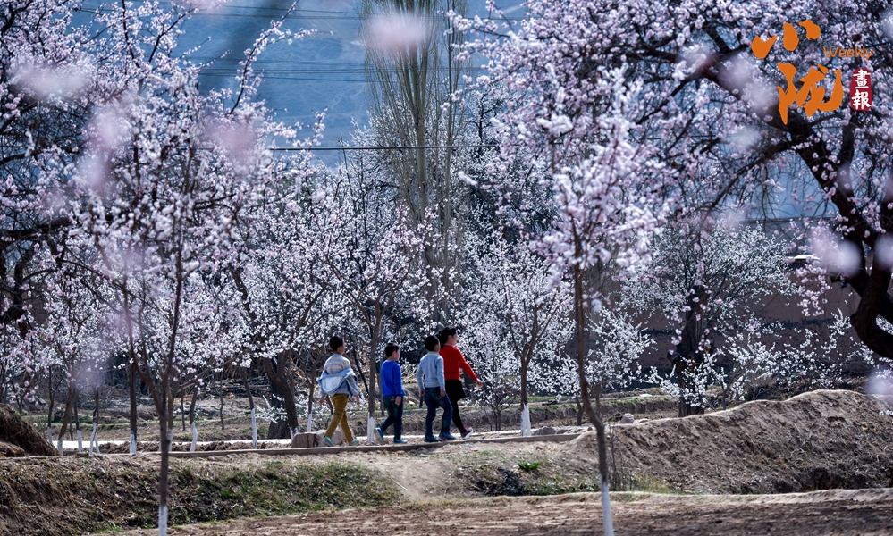 在唐汪川,無(wú)論是在田間地埂,還是房前屋后,到處都是含苞待放的杏樹。行走在杏花林中,踏著小道,迎著花香,別有一番情趣。