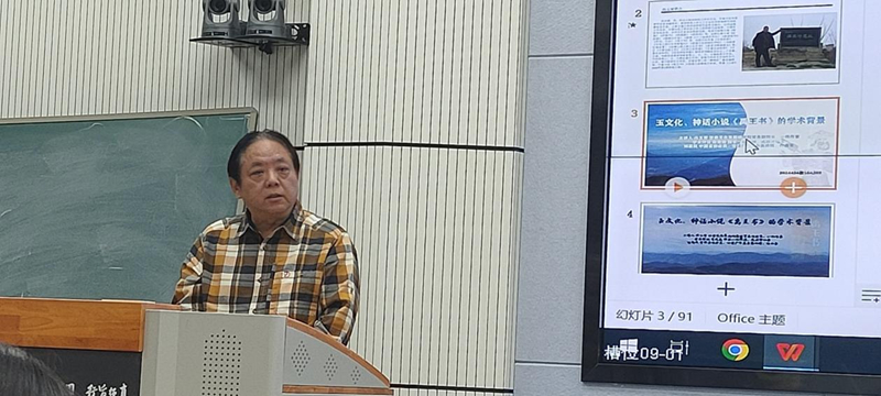 馮玉雷一直認認真真,埋頭干事。他心中有一個非常宏大的目標,向著這個目標行進過程中,腳踏實地。前幾年他在西北師范大學首開公選課《中國玉文化》,把玉文化作為專門的一門課來講,具有開拓性。玉文化作為一門學科,在全國各大高校此前還沒有先例,馮玉雷先生做了一件非常有意義的事情。這次講座對我非常有啟發(fā)。從這門課的內(nèi)涵來講,其實又是一個延續(xù):對傳統(tǒng)文化也好,考古文化也好,對甘肅省乃至整個中華大地,從玉文化開始出現(xiàn),發(fā)展到現(xiàn)在,就是一種延續(xù)。玉和玉器至堅至柔,至圣至潔,卻默默無言,但是它們告訴了我們很多以前不知道或者沒有意識到的信息,從重見天光的那一刻起,有無數(shù)信息在源源不斷的釋放,就看人們?nèi)绾卫斫?,如何解讀。如果不研究、發(fā)現(xiàn)這些玉器的內(nèi)涵,那還是相當于某種意義上的沉睡。馮玉雷創(chuàng)作小說,研究玉文化,還組織十幾次考察活動,國內(nèi)的有些大家都參與,這像不像流動的學術(shù)討論會?他的長篇小說《禹王書》出版剛剛一個月,據(jù)我所知,“玉文化、神話小說《禹王書》的學術(shù)背景”講座是首次分享,他把研究成果、創(chuàng)作成果第一時間通過課堂與同學們分享,我仿佛看到他帶著學生勇往直前,義無反顧地向前走著,這本身就是玉文化精神的傳承和發(fā)揚!我感覺到馮玉雷《禹王書》的思緒上下翻飛,縱橫馳騁,騰躍五千年。小說中有非常核心的價值內(nèi)涵,就是玉文化本身所具有的、深深進入到我們民族根脈中的文化內(nèi)涵,同時,又有就是對文學的一種激發(fā)。小說中的神話人物以及他們之間的交流、故事、語言,還有那些玉器,都非常神奇。可以預想,這本書的后延性非常長遠,希望玉文化班的同學能夠在馮玉雷老師帶領下,傳承發(fā)揚玉文化,完成從璞玉到玉器的轉(zhuǎn)化!