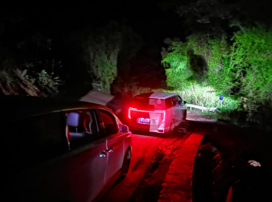 越峽江,過關(guān)隘,翠色遙接大巴山。陰晴朝暮,日行千里,蜀道而今不再難。然而,還不能輕松得太早,考驗(yàn)大家的時(shí)刻很快到來。夜色漸濃,車子在巴東山路河谷之間盤旋,路窄而陡。天上無月,很黑,已分不清林莽和天空。“千秋蜀道難依舊,深慨青蓮舊所經(jīng)。”(龔琪詩句)殷敏新小心翼翼地開車,緩緩而行,車頭大燈,兩道亮光,刺破黑夜,照亮前方的路。借著燈光,前方幾輛車在泥濘中打滑,搖頭擺尾,奮力頑強(qiáng)爬坡。早期文明的交流也是如此,那些勇敢者的光,雖然微弱,但也照亮了先民的前行之路。歷經(jīng)近10余小時(shí)的長途跋涉,于深深夜色中,抵達(dá)厚山腳下之廟埡古鎮(zhèn),下榻“皇城客棧”。黃犬依門搖尾,后廚熱氣騰騰。肚子早已抗議,好宵夜!正是:“山行廟埡近中宵,云氣深沉隱峻峣。何懼迷途期夜雨,雀聲驚夢到明朝。”