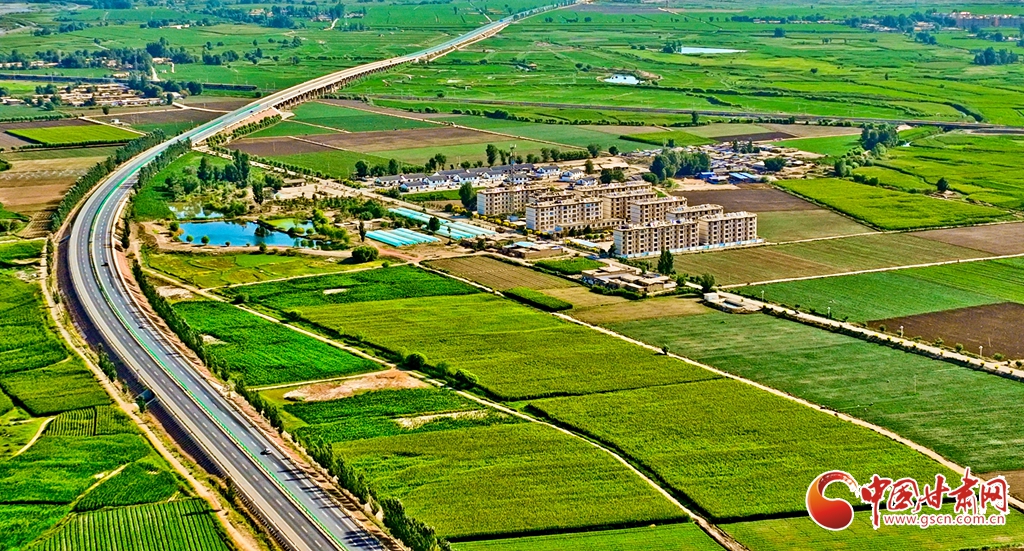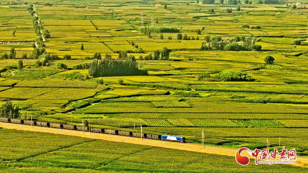盛夏時(shí)節(jié),位于祁連山下的甘肅省張掖市甘州區(qū)烏江鎮(zhèn)萬畝即將收獲的制種玉米生長(zhǎng)旺盛,宛若鋪了一層綠色的“巨毯”。綠油油的供港蔬菜基地上,種植農(nóng)戶們正忙碌采摘。田間林木,穿境而過的蘭新鐵路大動(dòng)脈和S237(蒙甘--青海)一級(jí)公路上,一列列火車、一輛輛汽車疾馳,勾勒出一幅幅美麗的田園生態(tài)畫卷。