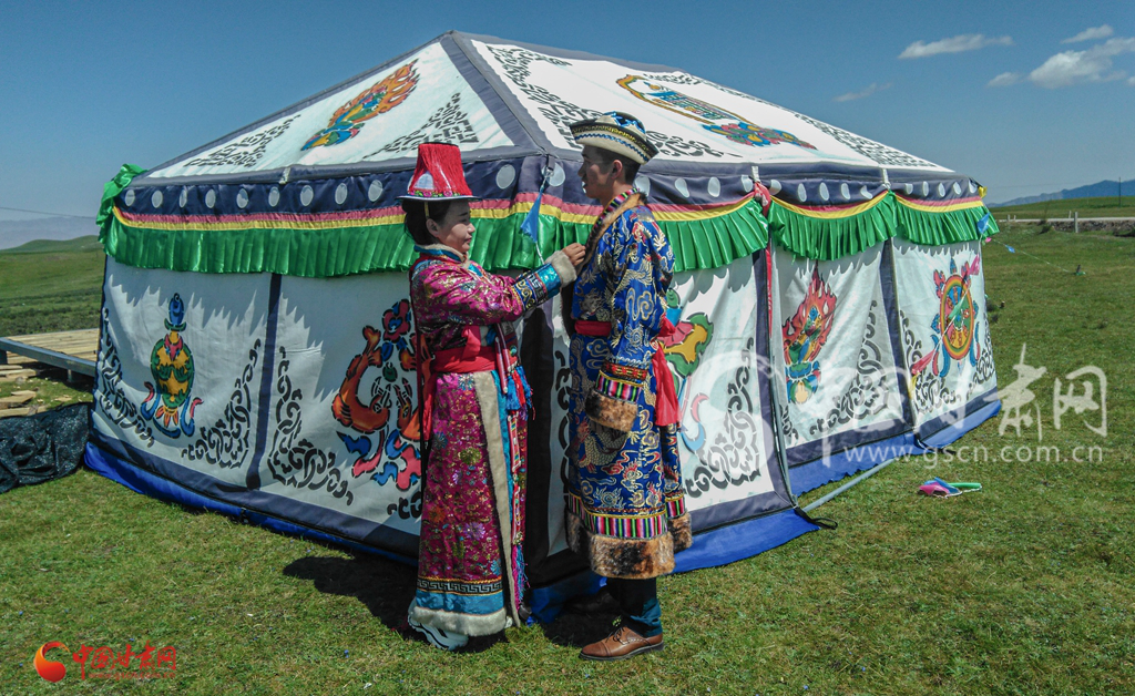 碌曲身著民族服飾的年輕藏民