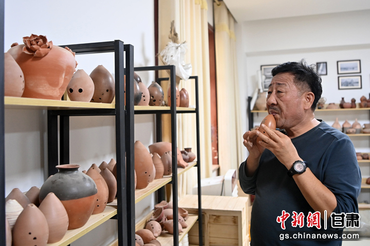 中國甘肅網(wǎng)9月5日訊 據(jù)中新網(wǎng)甘肅新聞報道(記者 王牧雨 劉瀟)陶塤是距今3800多年前的火燒溝遺址出現(xiàn)的我國最古老的吹奏樂器之一。1976年玉門市清泉鄉(xiāng)火燒溝文化遺址出土了二十多個制作精美、形似魚形、音色古樸、精致典雅的陶塤,它的旋律幽深、醇厚、悲壯、哀婉,形象表達(dá)出人們思想感情和喜怒哀樂。