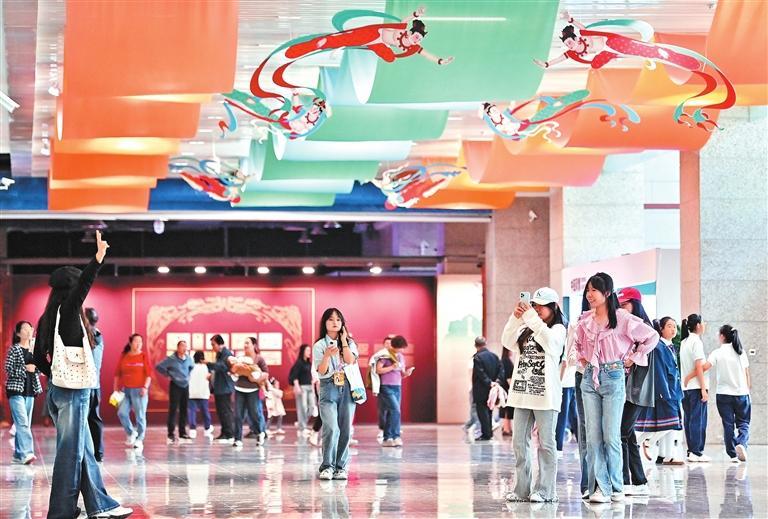 文化展覽是敦煌文博會(huì)的一大亮點(diǎn)。本屆文博會(huì)重點(diǎn)舉辦“敦煌研究院‘典范’‘高地’建設(shè)成果展、交響絲路·多彩華章——絲綢之路文明展、匠心傳承·創(chuàng)意綻放——非遺及文創(chuàng)精品展、絲路丹青·敦煌映像——美術(shù)精品展、‘南北之光’中國(guó)·烏拉圭攝影藝術(shù)交流展”等5項(xiàng)展覽,為海內(nèi)外嘉賓獻(xiàn)上文化盛宴。