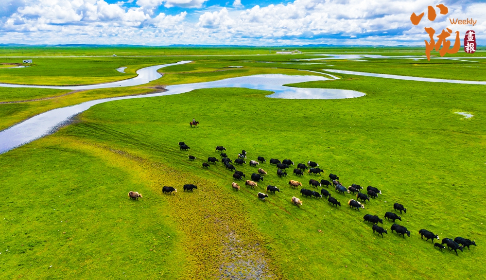 一望無際、空曠遼闊、滿目蒼翠、生機盎然。駿馬、牛羊、牧人、氈房,草原上靈動的元素,彰顯著人與自然的和諧。