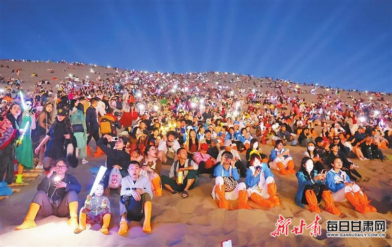 9月19日,游客在鳴沙山參與“萬人星空演唱會(huì)”。 新甘肅·甘肅日?qǐng)?bào)記者 田蹊 馮樂凱
