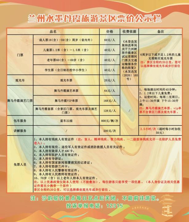 2.售票方式為隨車售票(可單獨購買專線車車票)或在蘭州水墨丹霞公眾號購票通道進行線上約票。