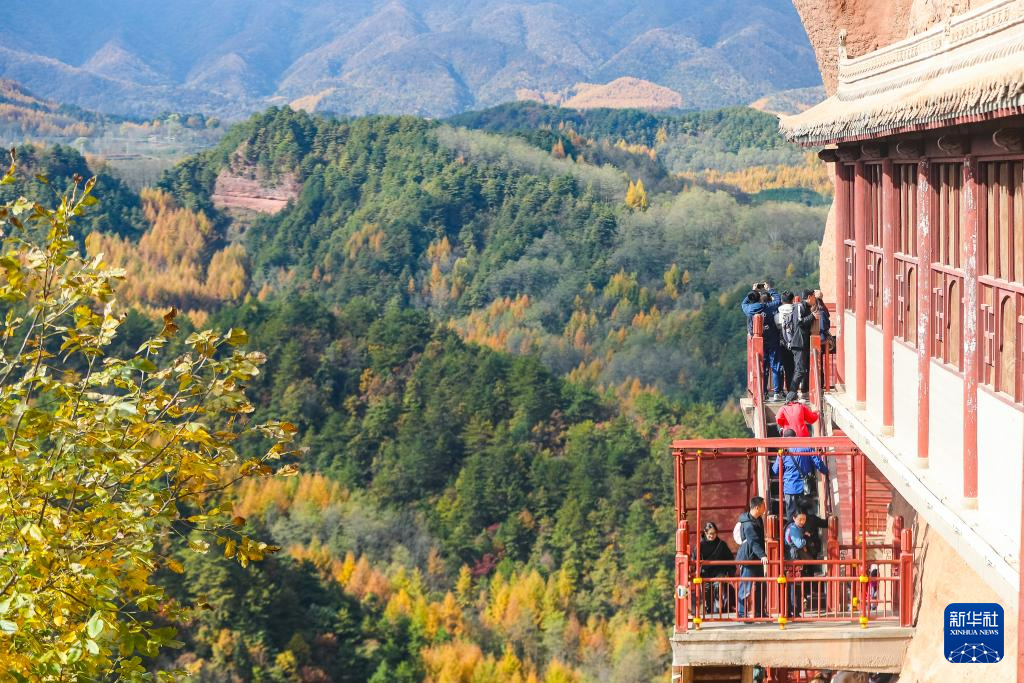 11月2日,游客在麥積山石窟參觀游覽。新華社記者 郎兵兵 攝