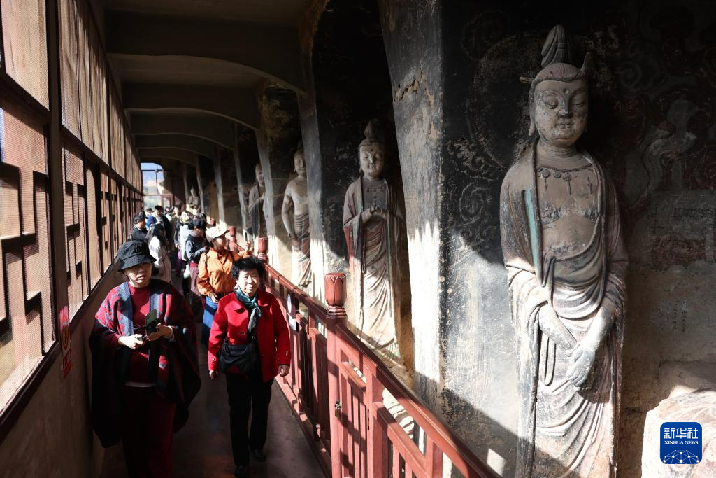 11月2日,游客在麥積山石窟參觀。新華社記者 陳斌 攝