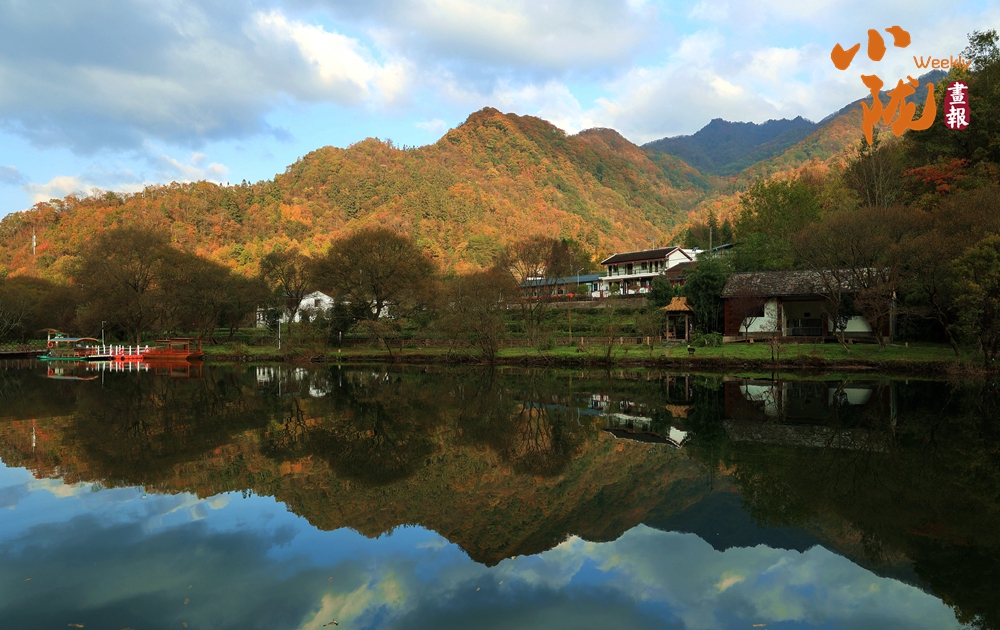 漫山染橙黃,彩池映秋色。天鵝湖湖波瀲滟,群山倒映,碧霞煙柳,移步換景,似乎走進(jìn)了蘇州園林。