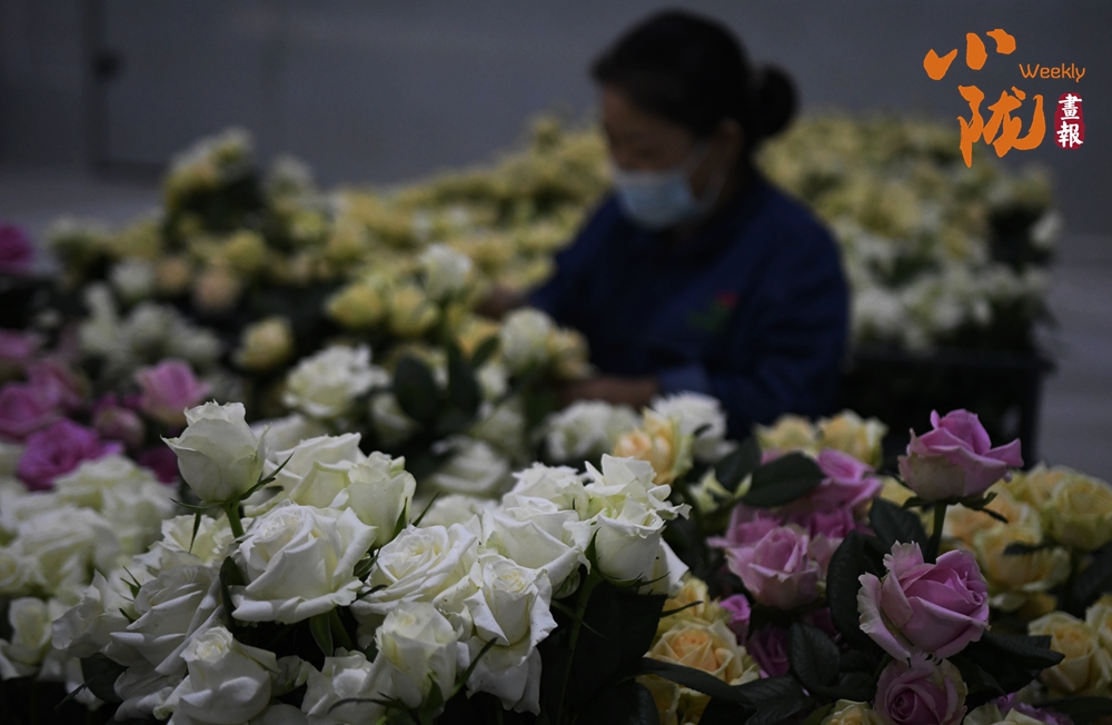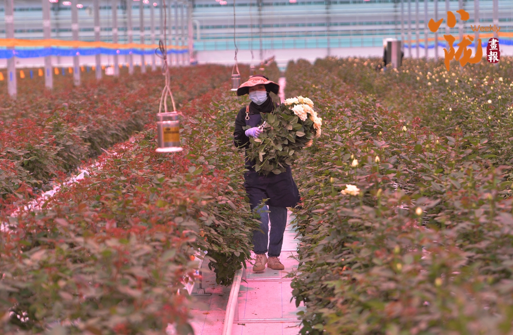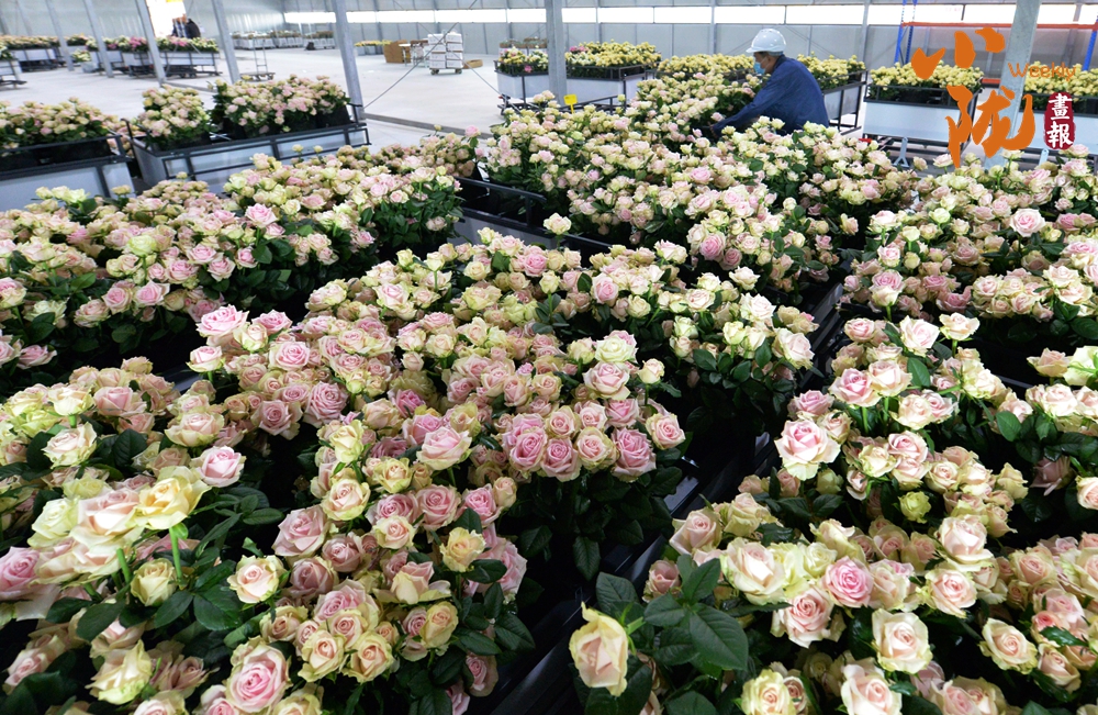 工作人員忙著采摘、分揀、包裝,一束束鮮切玫瑰從這里搭乘冷鏈物流,不僅暢銷(xiāo)國(guó)內(nèi),還遠(yuǎn)銷(xiāo)海外,成為“一帶一路”上一張靚麗的名片。
