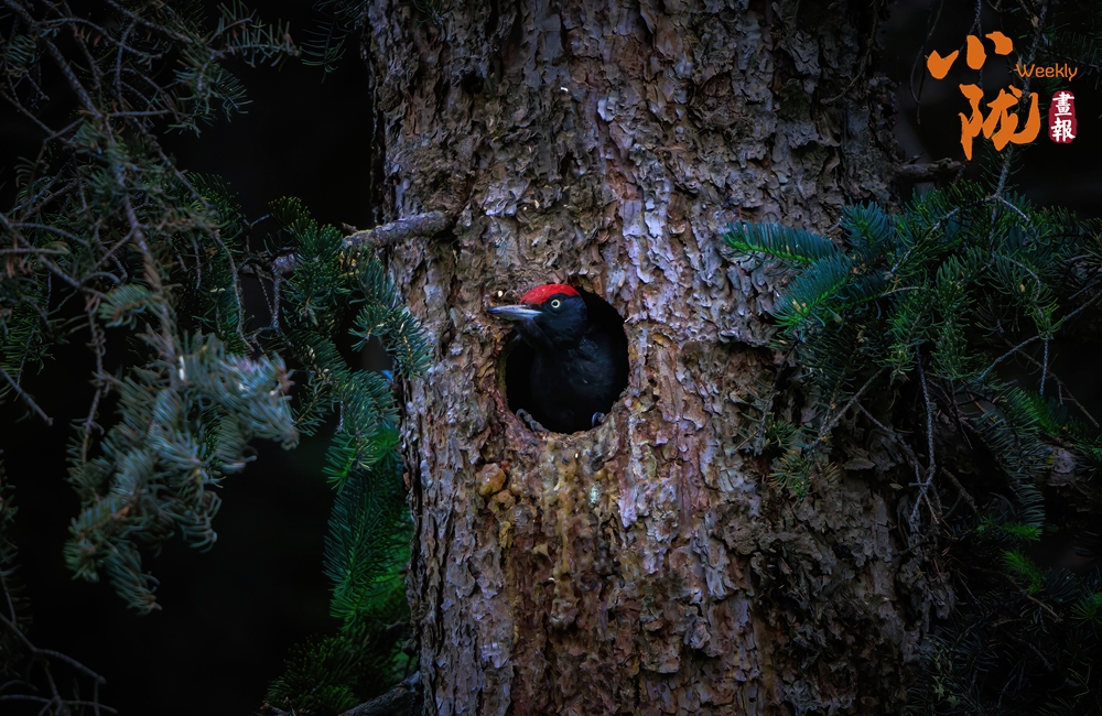黑啄木鳥是一種大型的啄木鳥。它們的體長可達(dá)到45-50厘米,翼展可以達(dá)到65-75厘米,體重在250-350克之間。其外形非常有特色,它們的羽毛主要是黑色的,胸部和腹部有一些白色的斑點,頭部有一個紅色的冠羽,這是它們的顯著特征之一。黑啄木鳥的喙非常強壯,呈灰黑色,非常適合在樹木上啄洞。