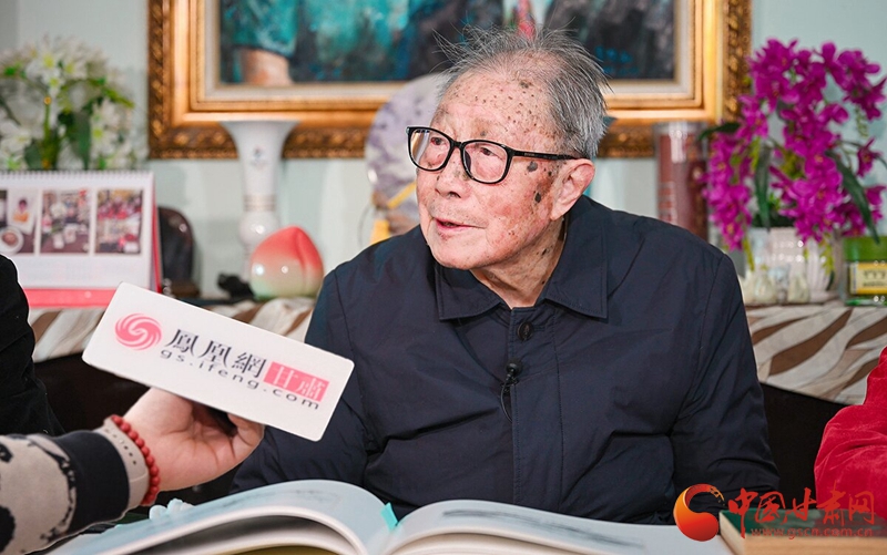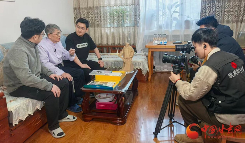 兩度擔(dān)任鐵人秘書的孫寶范(左二)與孫子、外孫接受鳳凰網(wǎng)甘肅頻道采訪?!£悤员?攝