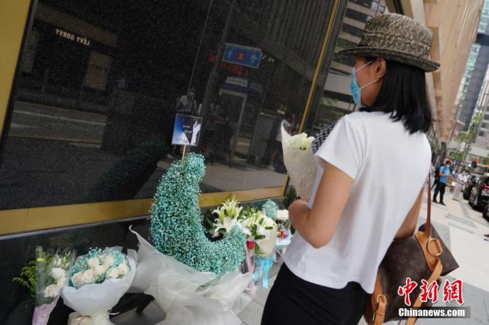 資料圖:2021年4月1日,歌迷和影迷來(lái)到香港文華東方酒店外獻(xiàn)上鮮花,擺上遺像,悼念張國(guó)榮。 中新社記者 張煒 攝