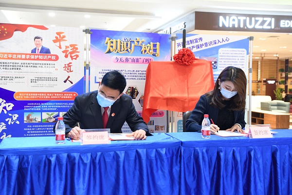 城關(guān)區(qū)法院與居然之家萬(wàn)佳天水路店,就設(shè)立“知識(shí)產(chǎn)權(quán)司法保 護(hù)示范基地”及日常工作的詳細(xì)內(nèi)容簽訂備忘錄。記者 李洋 攝