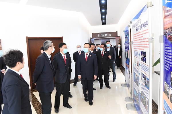 城關(guān)區(qū)法院為設(shè)立的“知識(shí)產(chǎn)權(quán) 司法保護(hù)示范基地”和“知識(shí)產(chǎn)權(quán)審判 服務(wù)崗”揭牌。 記者 李洋 攝