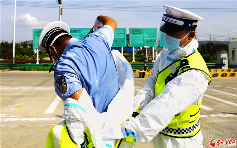 連日來,隴南市禮縣持續(xù)出現(xiàn)高溫天氣,禮縣公安局交警大隊(duì)執(zhí)勤民警身著防護(hù)服,堅(jiān)守在道路一線戰(zhàn)高溫,斗酷暑,一手抓常態(tài)化疫情防控,一手抓道路交通安全。