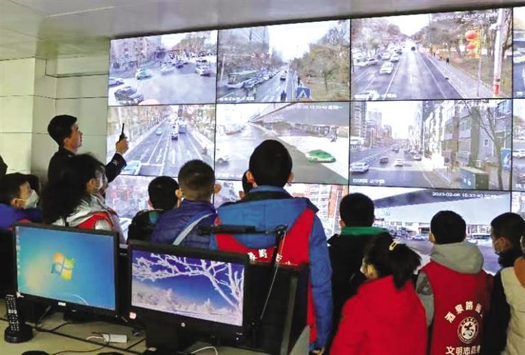 在指揮中心,民警向孩子們介紹了監(jiān)控視頻,講解了電子警察的作用,并通過(guò)監(jiān)控畫(huà)面詳細(xì)講解交警日常查處違法及出警派警流程。