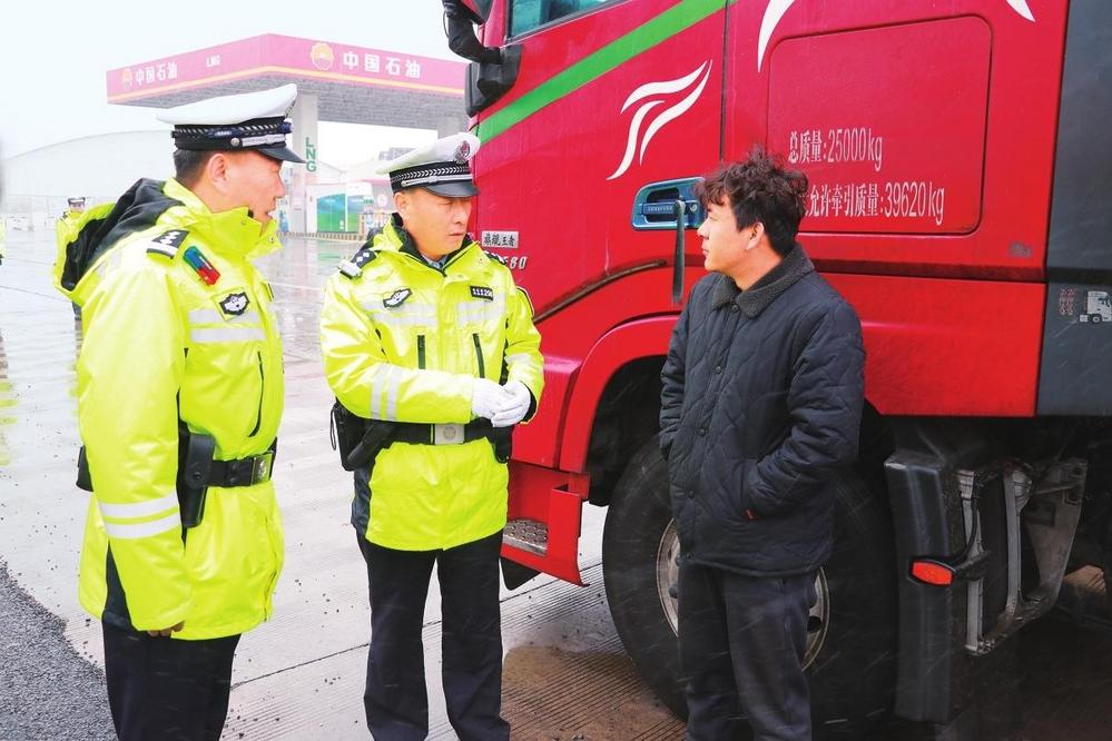 過路司機(jī)文東說:“我從蘭州回隴南,路過定西服務(wù)區(qū),這邊的警察也貼心提醒我們路上要注意安全,今天雪也下得很大。要過年了,也提前祝大家新春快樂!”