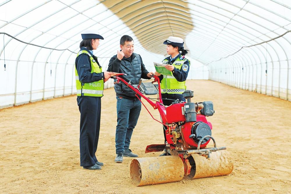 民警向群眾講解交通安全知識。3月6日,定西市公安局安定分局民輔警走進(jìn)田間地頭,開展護航春耕交通安全宣傳活動,營造安全暢通的道路交通環(huán)境。 新甘肅·甘肅法治報通訊員楊永剛攝
