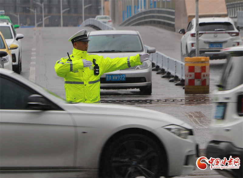 蘭州交警雨中執(zhí)勤護(hù)平安