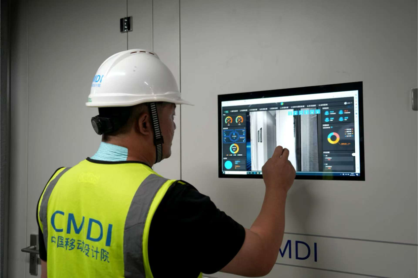 中國移動(甘肅.慶陽)數(shù)據(jù)中心N01新型工業(yè)化數(shù)據(jù)中心工作人員正在進(jìn)行設(shè)備檢查。慶陽融媒供圖