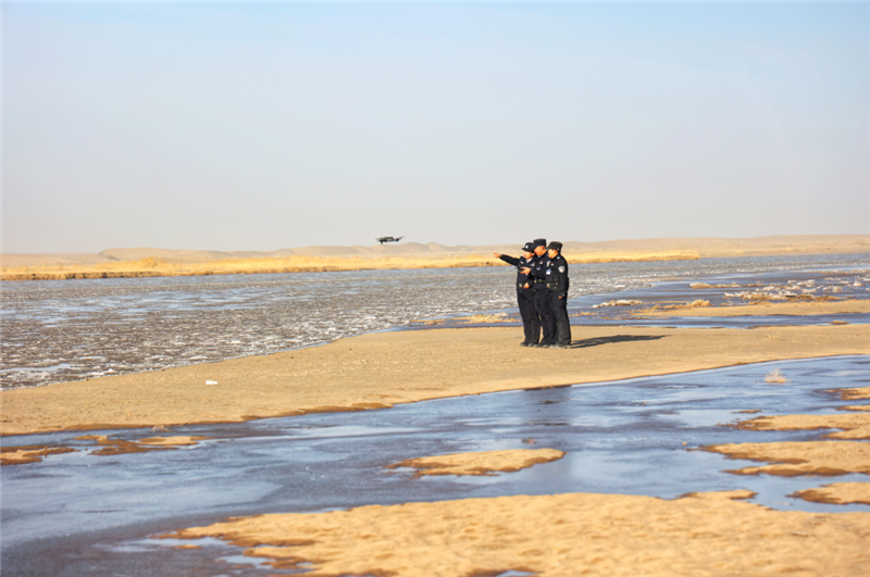▲金塔縣公安局城關(guān)派出所民輔警深入轄區(qū)生態(tài)保護(hù)區(qū)開(kāi)展車巡、步巡、無(wú)人機(jī)巡,構(gòu)建起全域覆蓋、空地聯(lián)動(dòng)、精準(zhǔn)高效的生態(tài)安全防控體系,為織密生態(tài)保護(hù)網(wǎng)保駕護(hù)航。(葛萬(wàn)譽(yù) 攝)