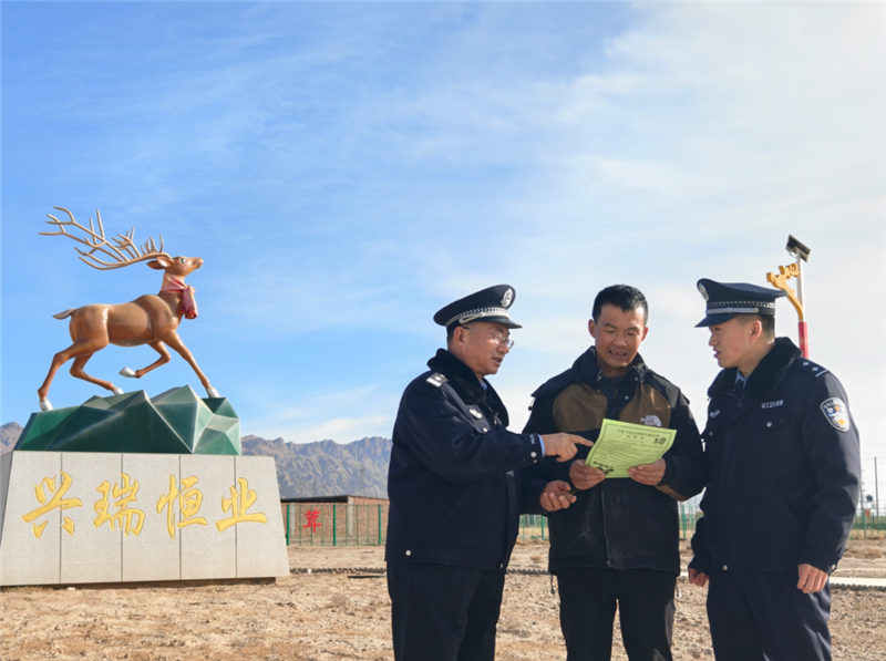 ▲山丹縣公安局清泉派出所民輔警深入轄區(qū)梅花鹿養(yǎng)殖基地,了解冬季梅花鹿養(yǎng)殖情況,開(kāi)展隱患排查、治安巡防、反詐宣傳、糾紛調(diào)解等護(hù)企安商工作。(尚婧 攝)