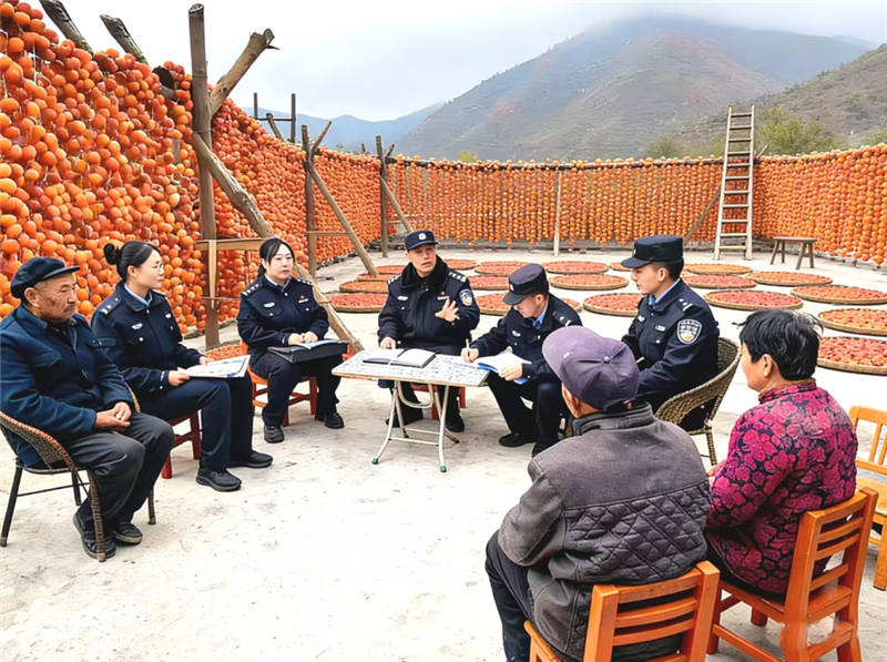 ▲舟曲縣公安局城關(guān)派出所民輔警深入轄區(qū)柿子晾曬場(chǎng)和柿子收購(gòu)點(diǎn),開(kāi)展反詐宣傳活動(dòng)。(朱彤 攝)