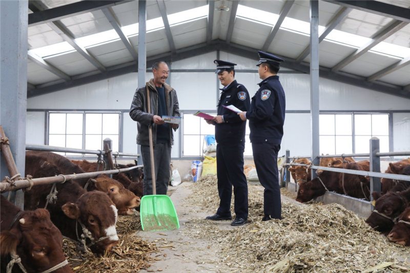 ▲平?jīng)鍪泄簿轴轻挤志终优沙鏊褫o警深入轄區(qū)紅牛養(yǎng)殖基地,開(kāi)展針對(duì)性普法宣傳活動(dòng),進(jìn)一步筑牢轄區(qū)紅牛養(yǎng)殖產(chǎn)業(yè)法治防線,提升廣大養(yǎng)殖戶的法律意識(shí)。(張鏡鏡 攝)